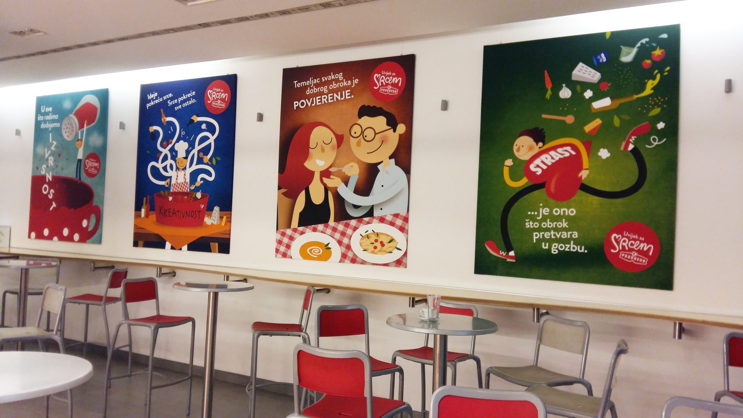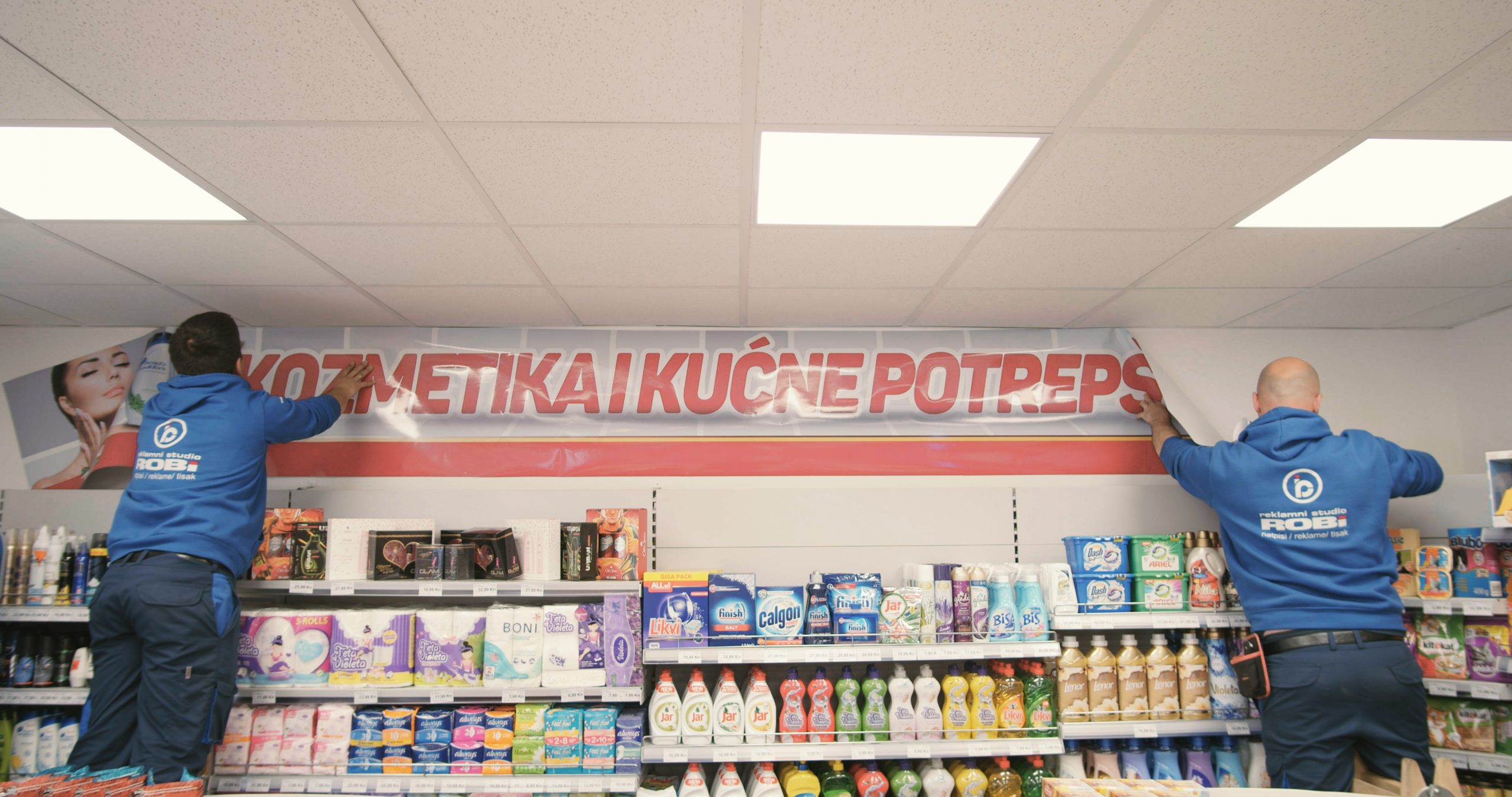 Promo pultovi, plakati, roll-up display sustavi, klik-klak panoi i A stalci, podna grafika, naljepnice, 3D naljepnice i slova ili uređivanje prodajnih mjesta, samo su dio onoga što možemo odraditi za Vas.